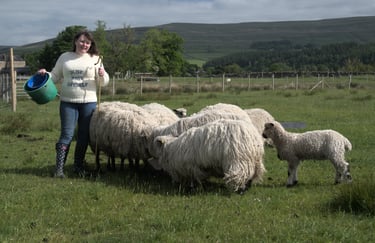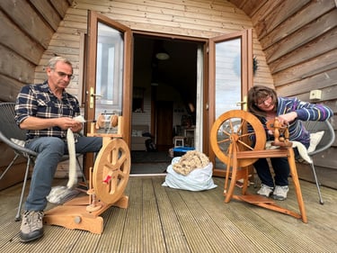 As a child, my mom owned a small yarn shop and was a prolific knitter, something she has passed onto me. I am now based in a very rural part of the North Pennines, in Cumbria and am surrounded by sheep, which has made me even more passionate about the use of British Wool, which comes through in my spinning, knitting & crochet workshops. You can learn more about them at Moorland Handmades. I have even graced our TV screens twice - once as part of a segment promoting British Wool on Joe Lycett's "Got Your Back" and then teaching Robson Green to spin on his BBC2 "Weekend Escapes" programme.