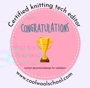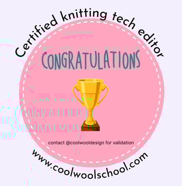 I have completed the comprehensive technical editing course, run by the experienced and renowned Carol Ibbotson. I am also a member of the Knitting & Crochet Guild.